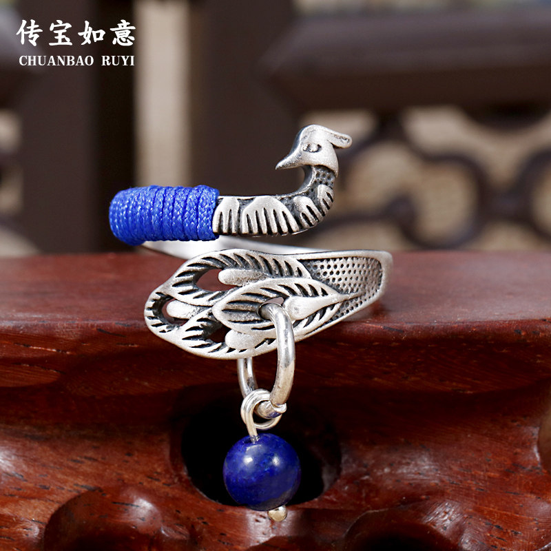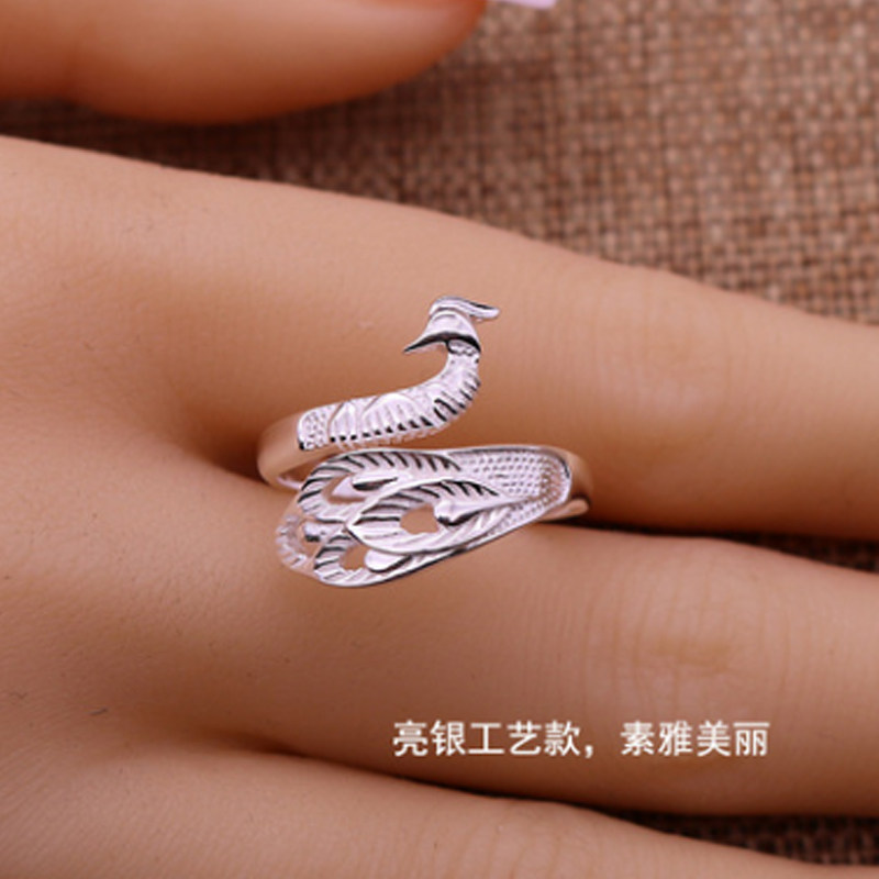 Cloisonne craft section 990 foot silver belt certificate Bright silver craft section 990 foot silver belt certificate Retro craft section 990 foot silver belt certificate Creative peacock ring Bird feather peacock ring Peacock open