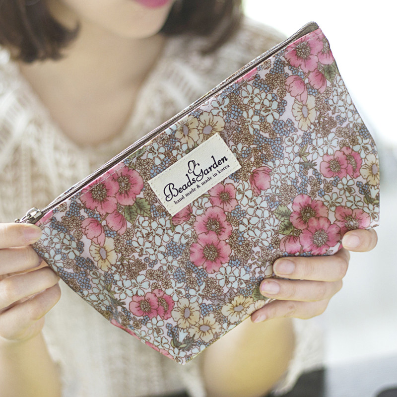 South Korea imported DAMS fresh and elegant flowers waterproof cosmetic bag storage bag Wash bag simple