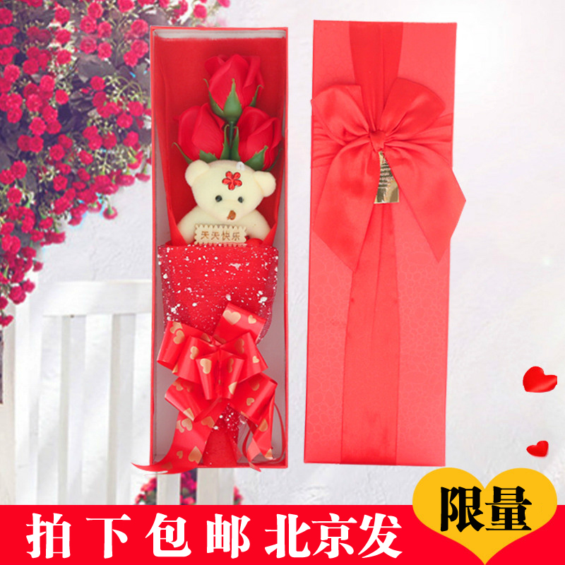 10 single-branch pink gift box packed with small bear happy and happy letchbox random color box of small bear Valentine's Day Happy letdown box of 33 Gift Boxes Rose Pink Pink Light Bear Flowers Gift Box 33 Gift Boxes Red