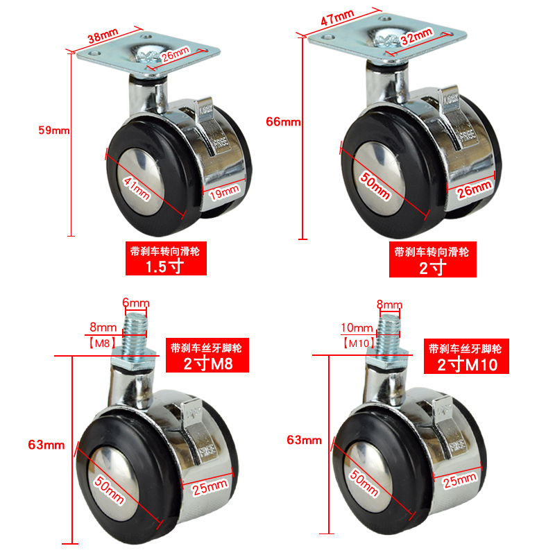 Universal wheel wheel with brake steering pulley cabinet table table computer castors 1 5 inch flat alloy Ferry