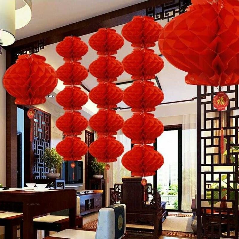 Wedding supplies wedding New Year opening decoration decoration festive plastic paper honeycomb lanterns five series full of palace lanterns
