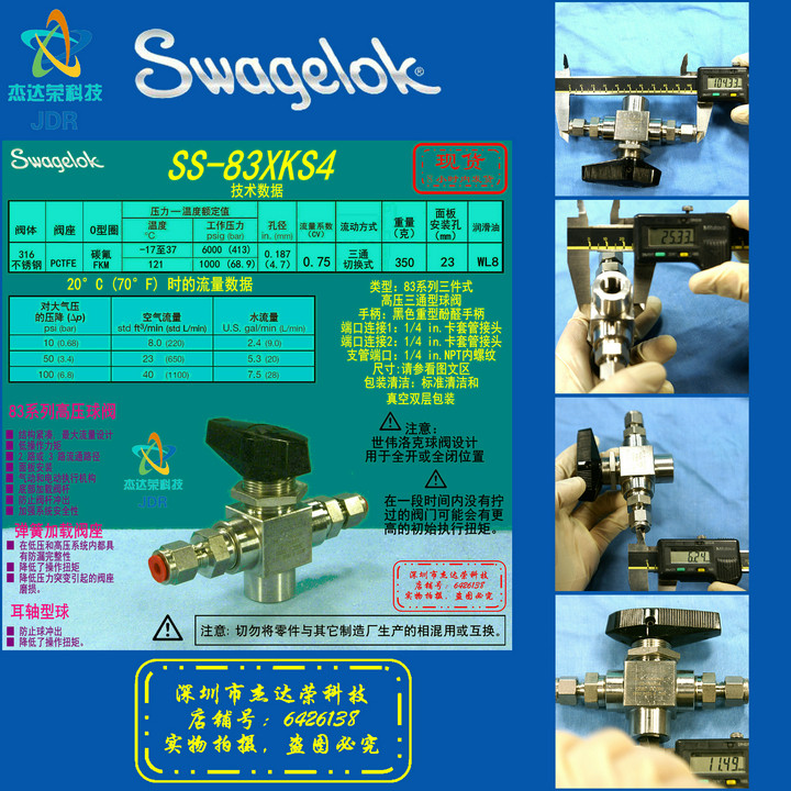 (SS-83XKS4) Swagelok Swagelok high-pressure 3-pass ball valve 1 4 in.card sleeve connector