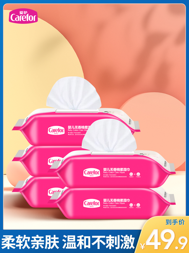 Care for baby wet tissue paper newborn special hand mouth baby wet paper towels with lid wet wipes big bag Family affordable
