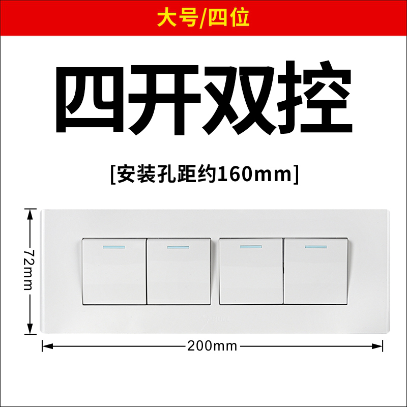 Bull Switch Socket 118 Type Switch Four-Open Socket Panel 4 Open Quad Power Wall Switch Four Double Cuts
