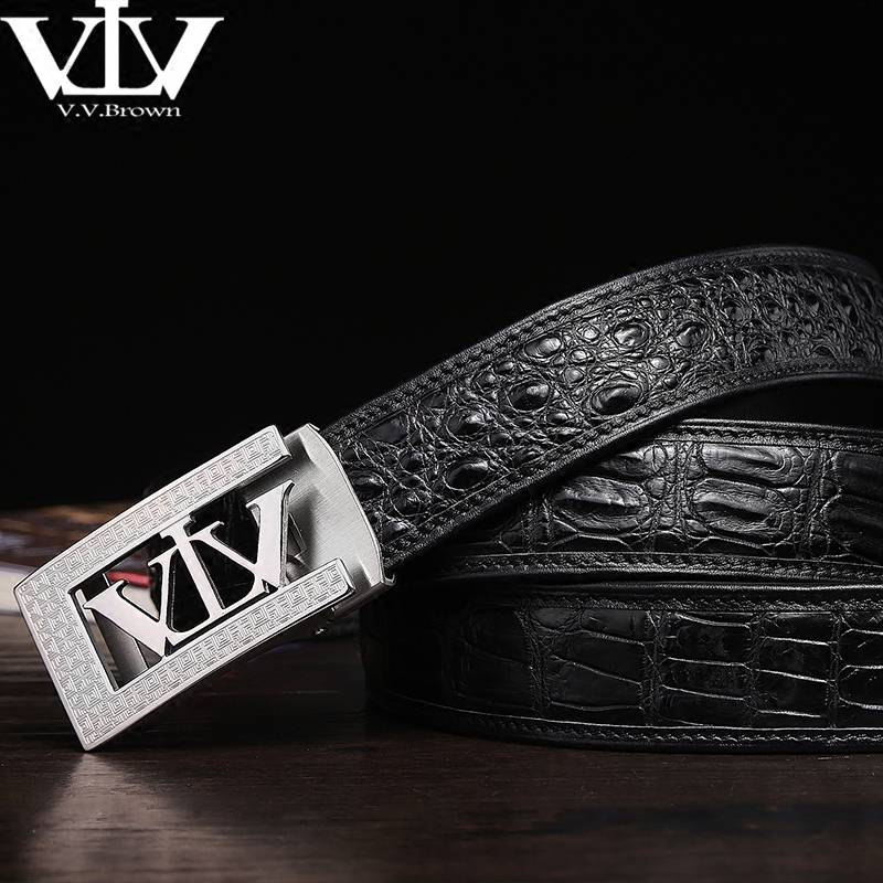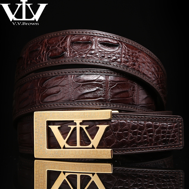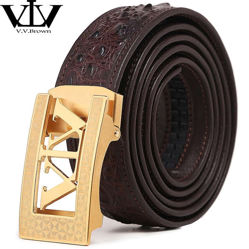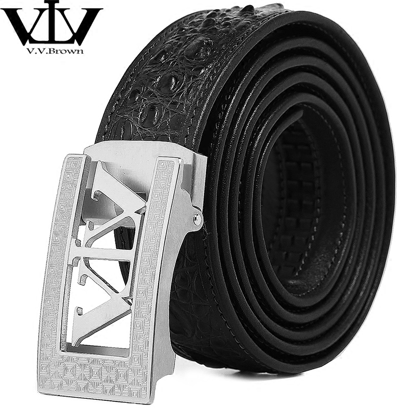 V V Brown avocado leather waist belt genuine leather stainless steel automatic buckle belt male star same pants belt