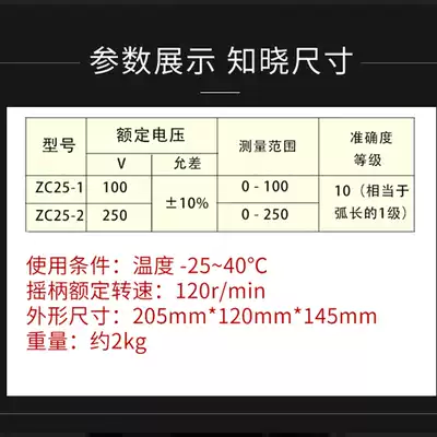Jinchuan ZC25-1 ZC25-2 alloy insulation resistance tester 100-250V shake meter Megaohm meter