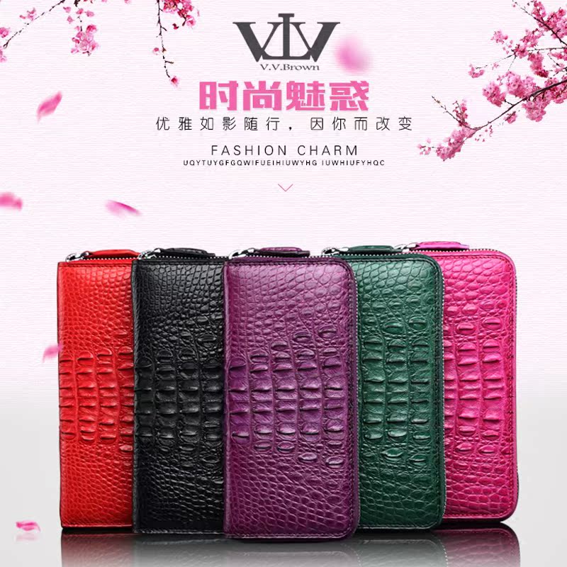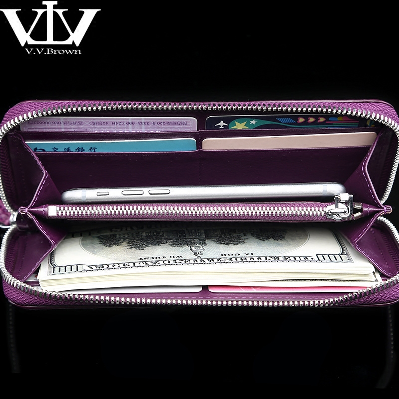V V Brown stars the same lady wallet avocado leather handbag women's new leather clip female long version