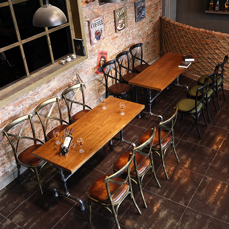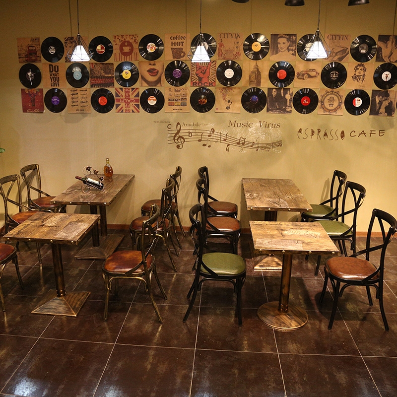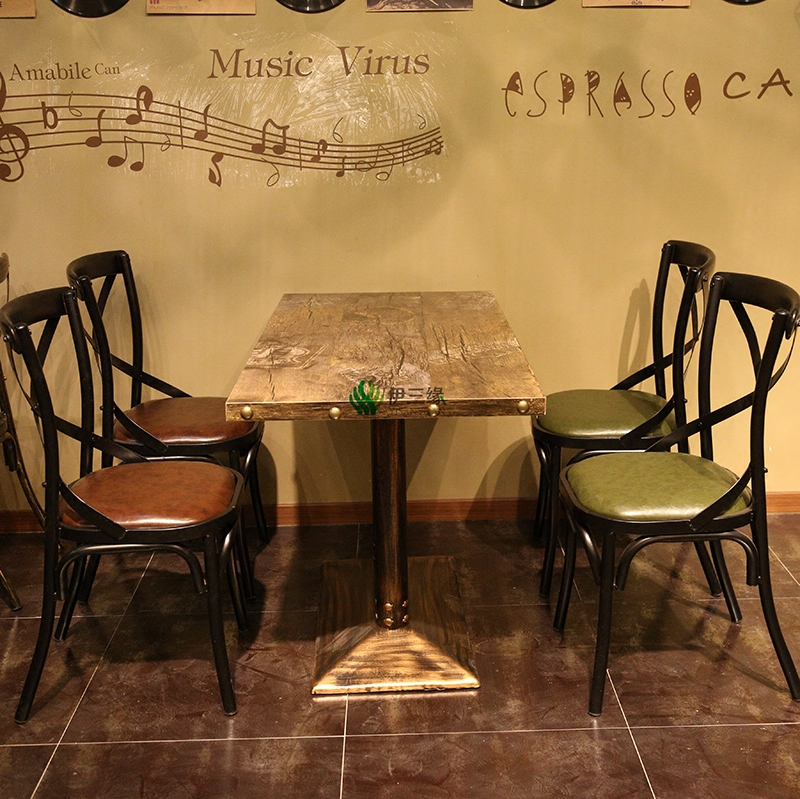 Industrial style dining table and chair European theme dining room Dessert shop table and chair combination Retro cafe bar dining chair