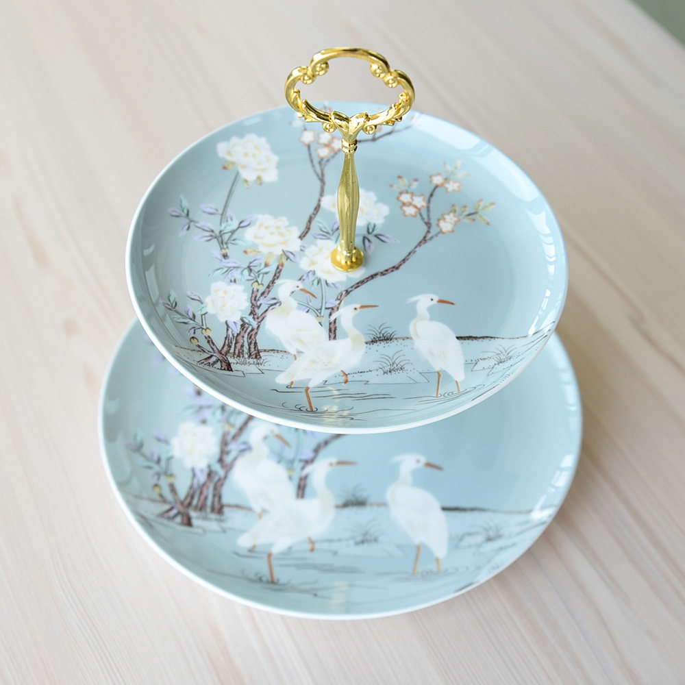 Crane Cutlery Fruit Pan Creative Eu Style ceramic Wedding Fruit Pot Double Classic Afternoon Tea Set Group