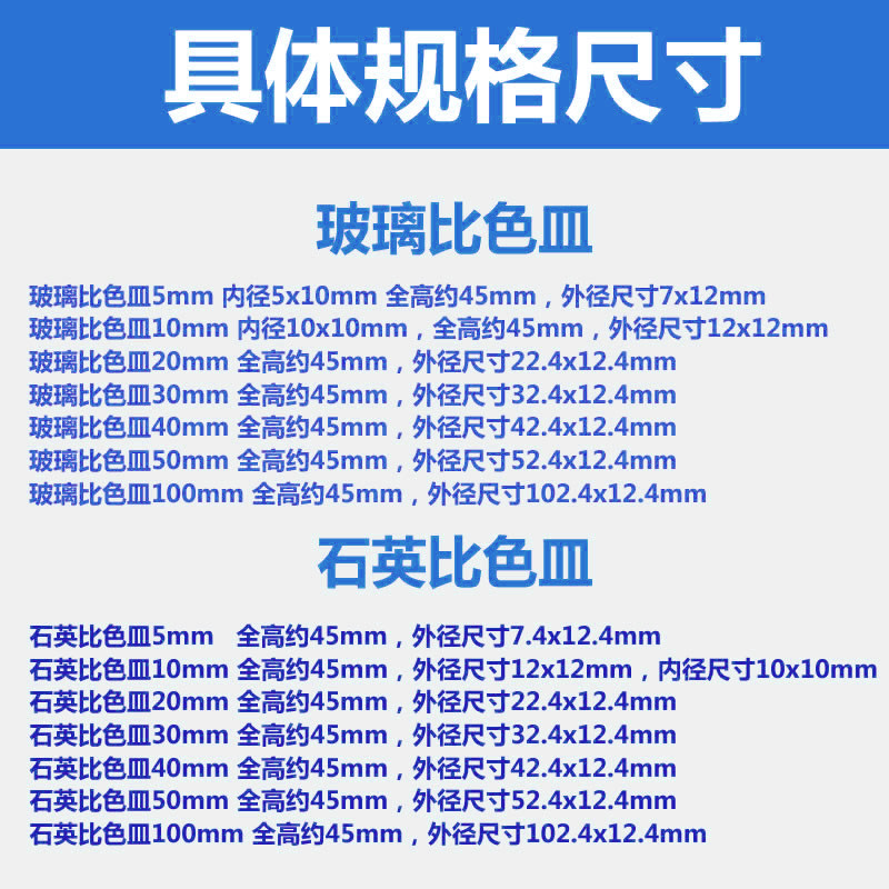 Quartz glass cuvettes 5 10 20 30 40 50 100mm1cm722 751 fused acid and alkali resistant