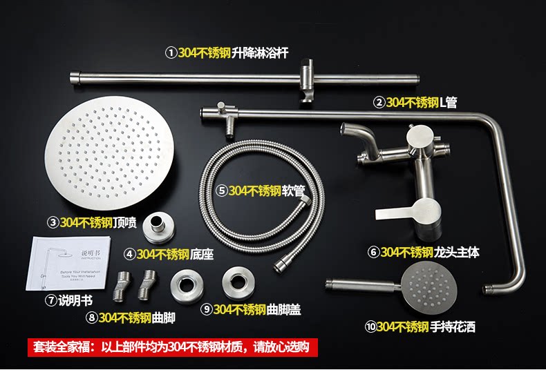 304 stainless steel shower head double shower nozzle large shower sprinkle head tap with lift frame combined suit