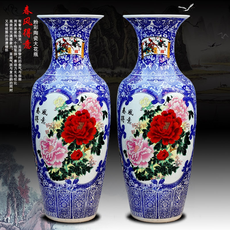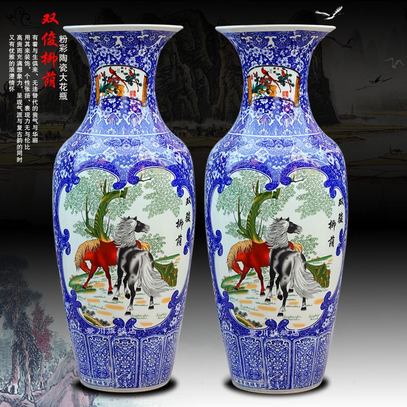 Jingdezhen Ceramic Ware Green Flower Porcelain Imitation Ancient Child Hauntzu Hauntu Landing Big Vase Hotel Decorated Living Room Hem