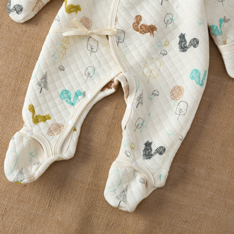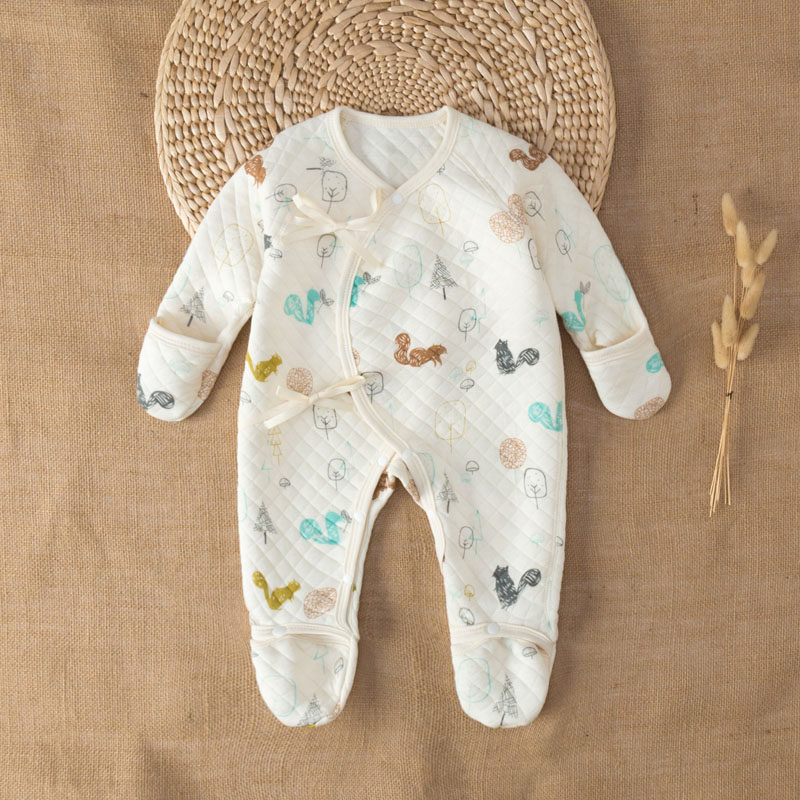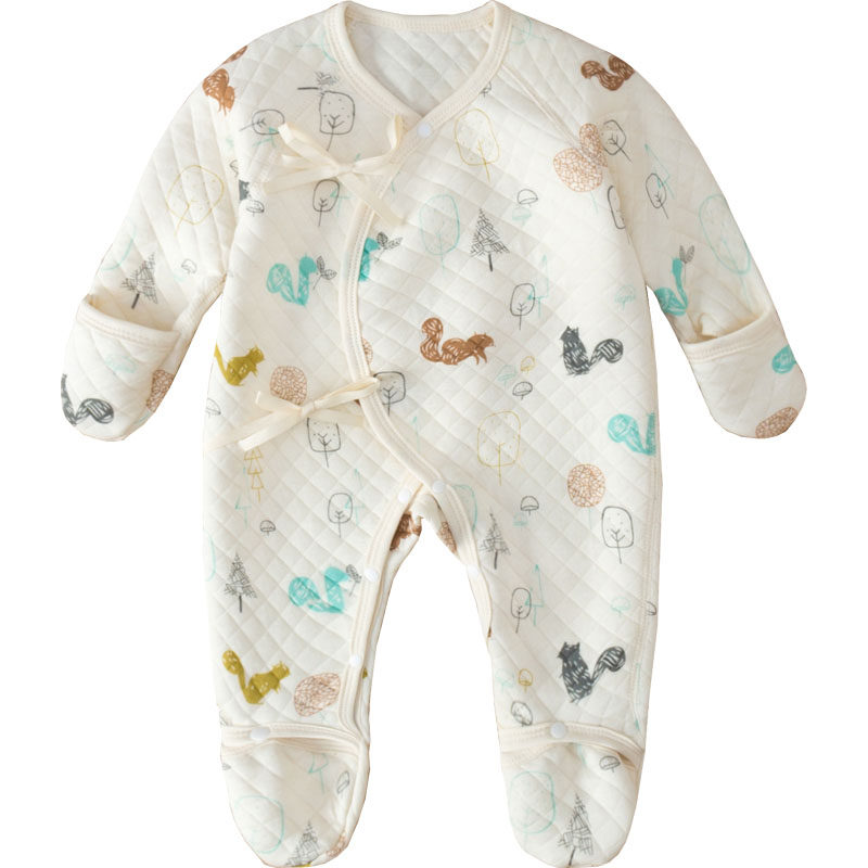 Newborn baby one-piece clothes autumn and winter quilted newborn warm baby monk clothes pure cotton footed romper