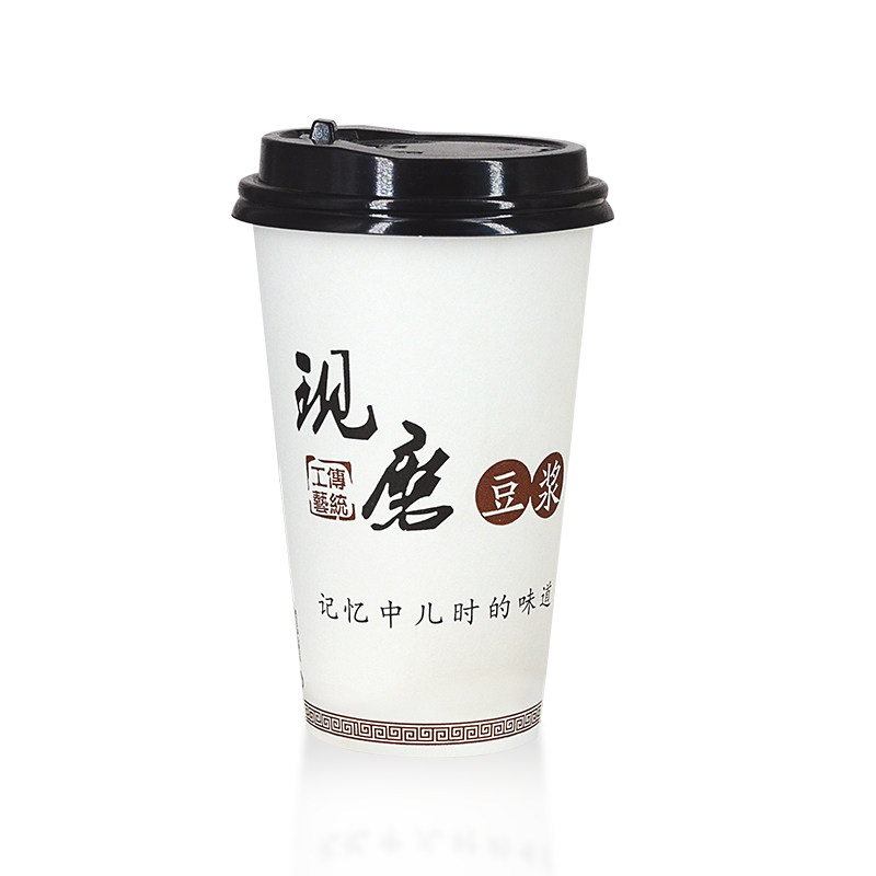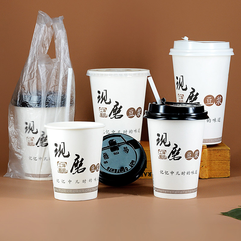 Disposable thickened freshly ground soymilk cup with lid straw Household breakfast paper cup Commercial packaging Portable Take-away