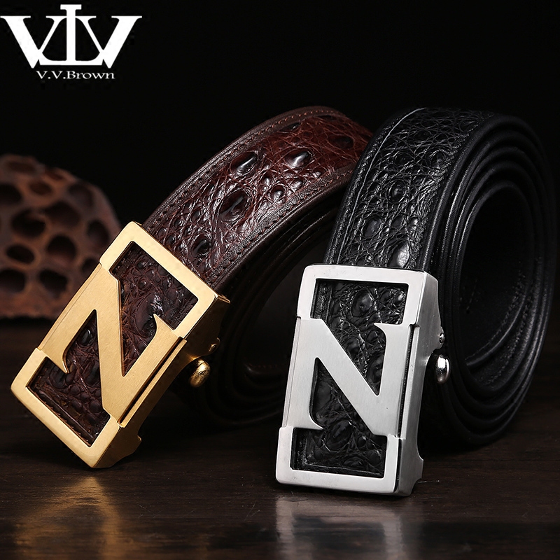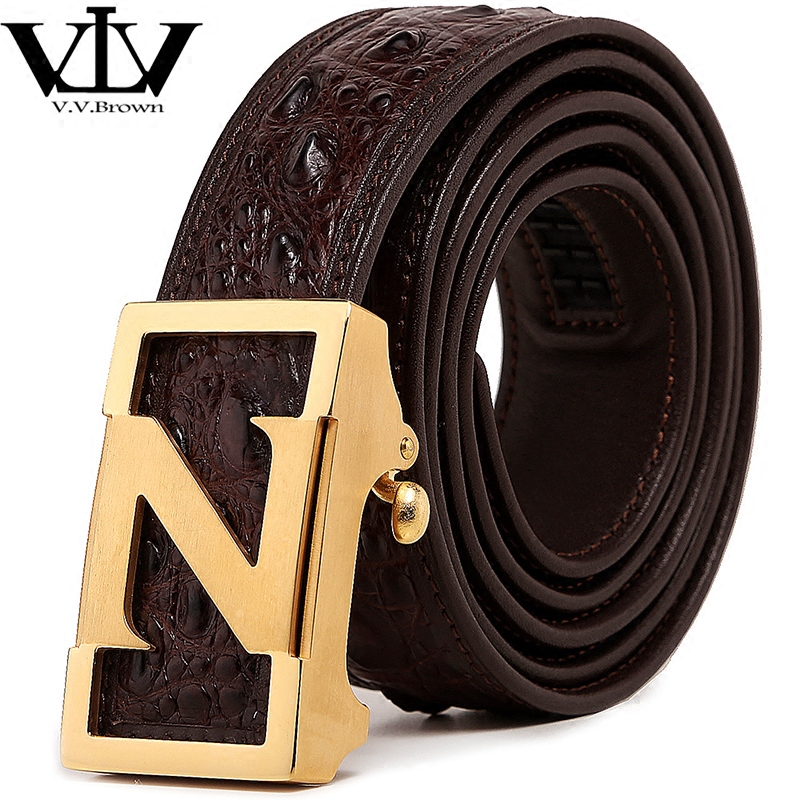 V V Brown men's belt of male genuine leather steel Z - character automatic buckle star of the same belt male