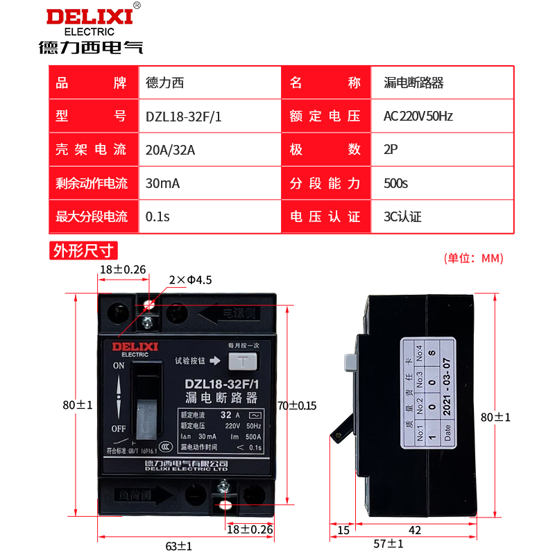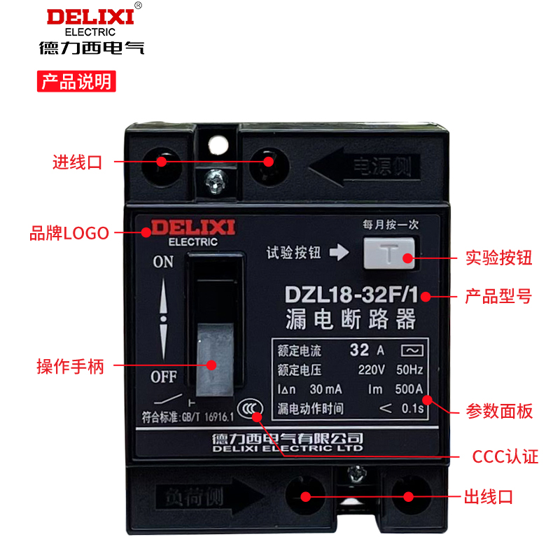 Delici Household Leakage Protector Electric Touch Switch DZL18-32F 1 32A 20A Protector Leakage