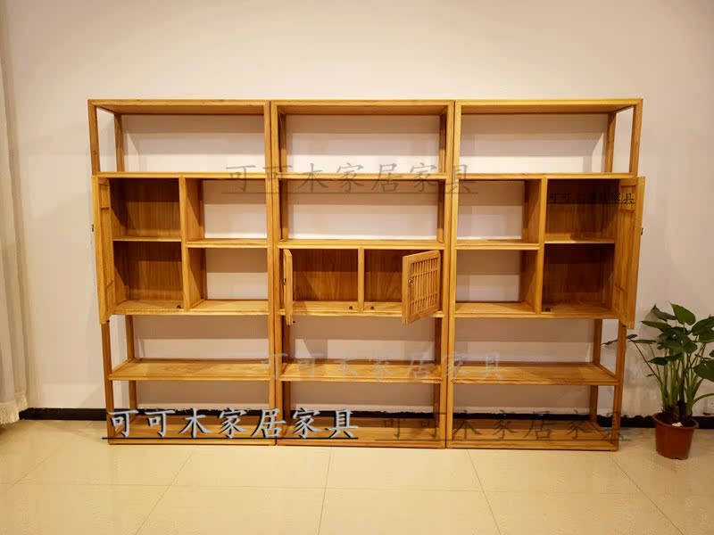 New Chinese solid wood bookcase bookcase combination old elm paint-free furniture antique shelf display rack teahouse club furniture