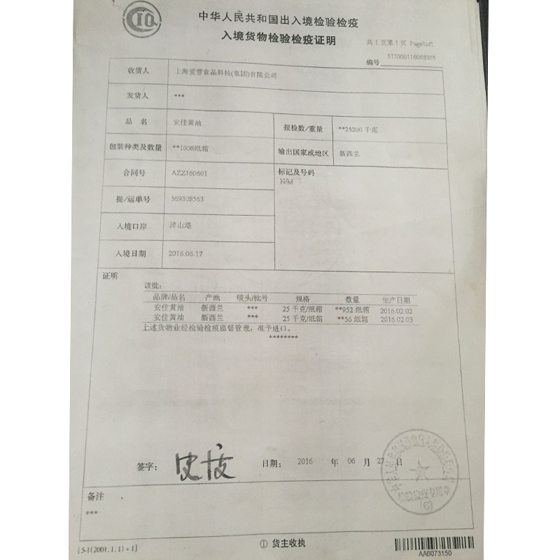 (New Zealand original imported) Anja Rhubarb Oil Animalic Cream 25KG Biscuits Bread Steak