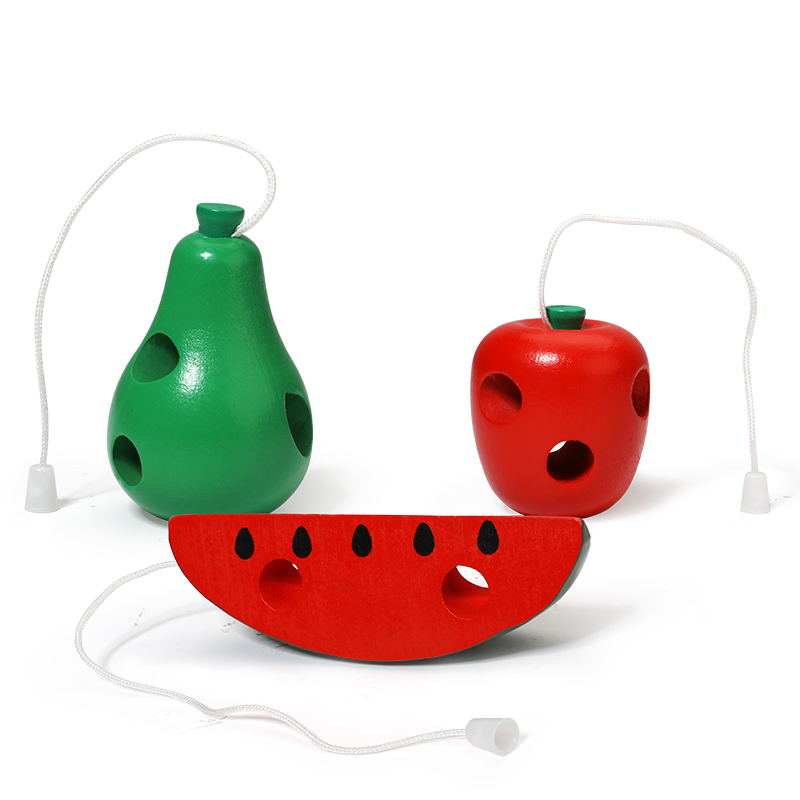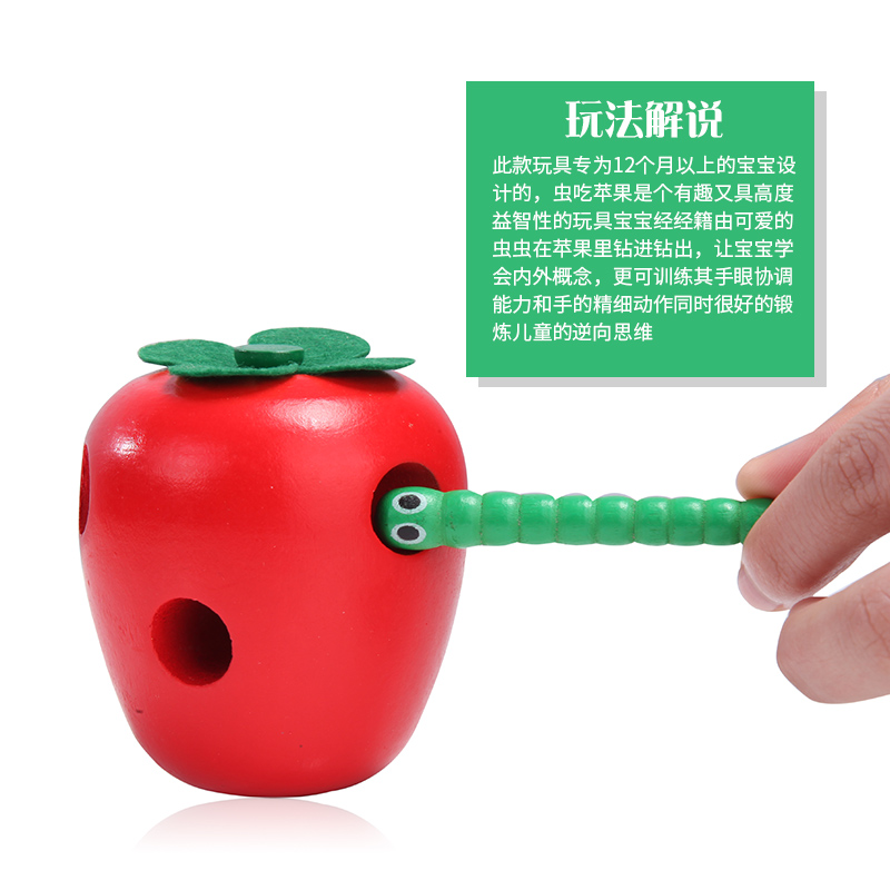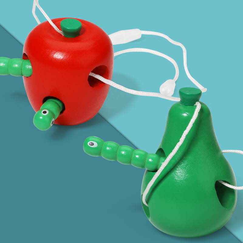 Young children learn early wisdom to develop a mind-action toy boy girl baby worms eat fruit threading games
