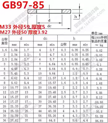 Blackened GB97 standard flat washer flat gasket Huasimeon carbon steel M3M4M5 ~ M16