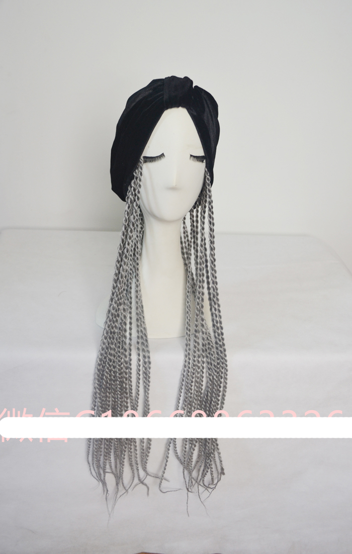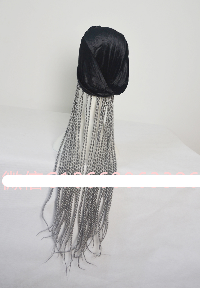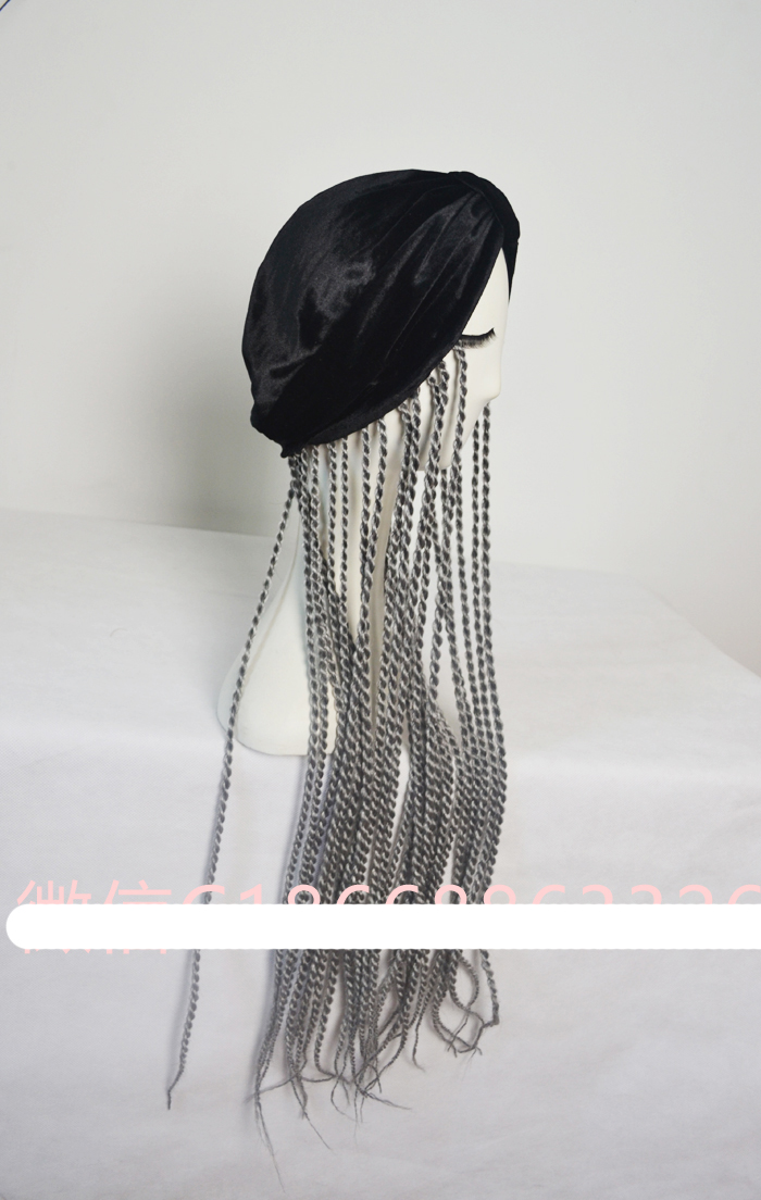 European and American black flannel bag headscarf hat grey braid wig cap acting out of clothing accessories female singer DJDS-Taobao