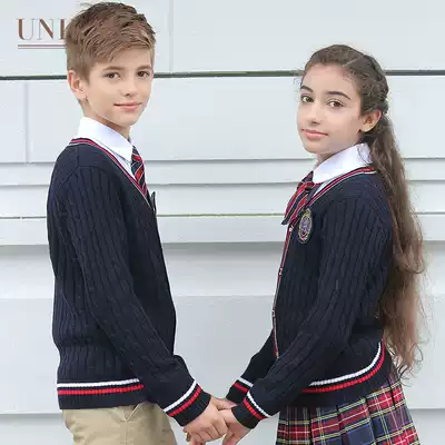 Primary and secondary school students ' school uniforms Spring and autumn three-piece children's sweater cardigan suit class clothes British style kindergarten garden clothes