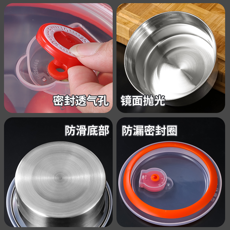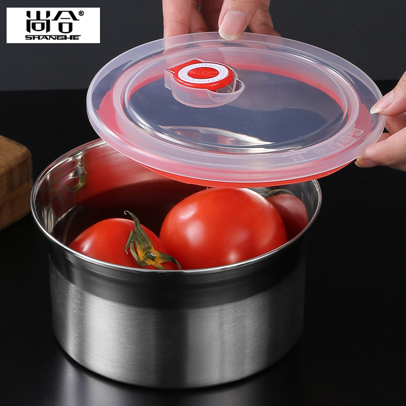 Shanghe 304 stainless steel fresh-keeping box round refrigerator storage sealed box soup bowl bento box lunch box three-piece set