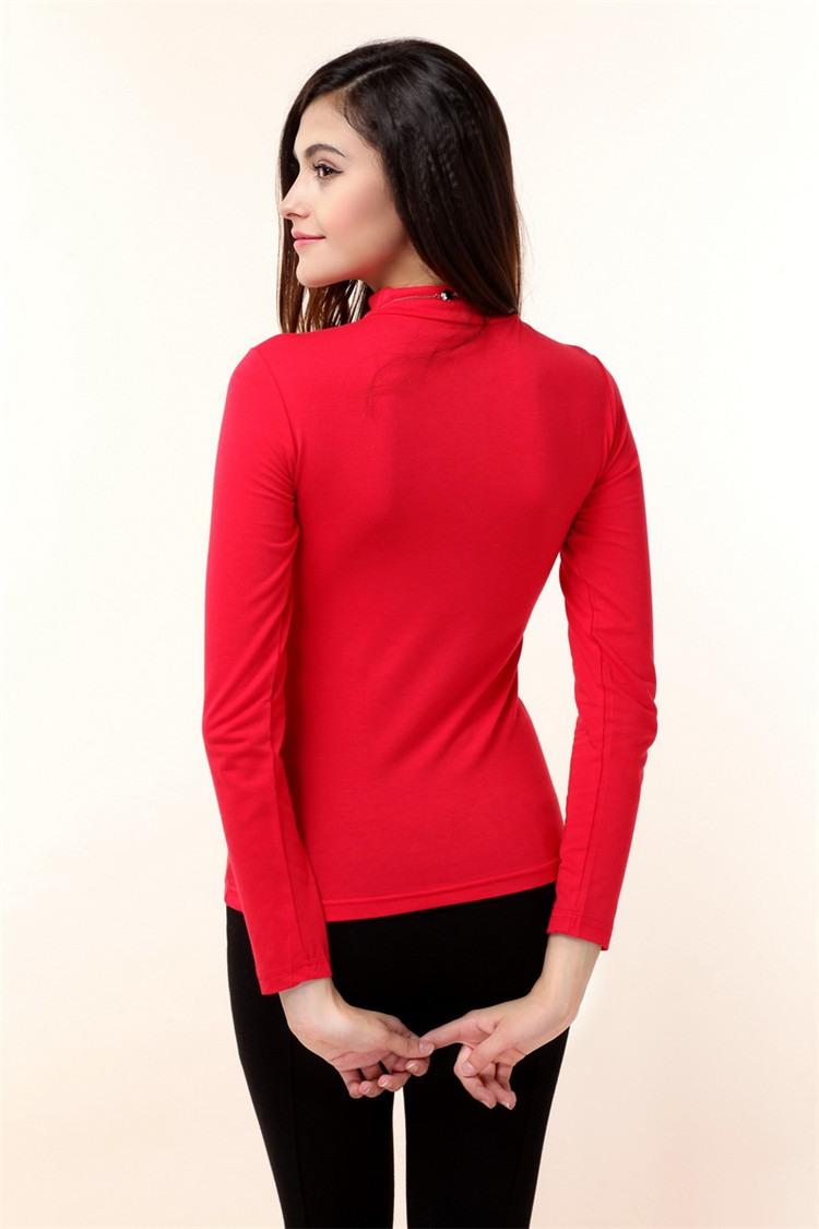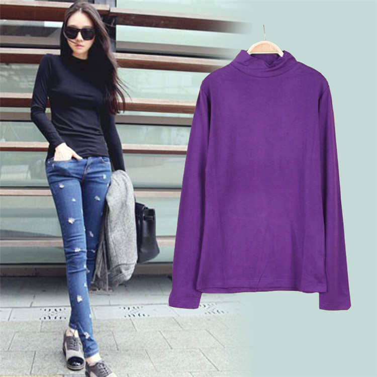 Long-sleeved T-shirt women's casual elastic running fitness clothing sweat-absorbing breathable self-cultivation mid-high collar solid color bottoming shirt