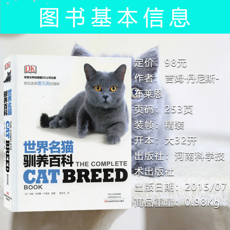 World Famous Cat Domesticated Encyclopedia Pet Cat Rearing Books Raising Cat-Cat Knowledge Encyclopedia Pet Cat Feeding books Cat Domestication Books 9787534976292 Love Cats Addicted