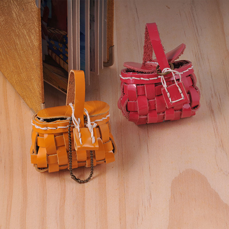 Elegant leather mini material bag Mini picnic basket bag decoration hanging decoration