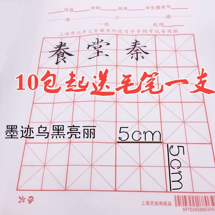 Shanghai municipal nine-year compulsory education stage secondary examination paper writing brush writing grade level examination special paper soft pen class homework 16 g half raw and half cooked rice character six zi xuan paper 5cm g