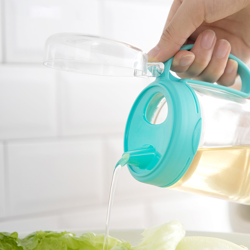 Tea Flower Kitchen Supplies Dust-Proof Oil Bottle Home Leakproof Big Glass Oil Jug With Lid Dust-Proof Seasoning Pot