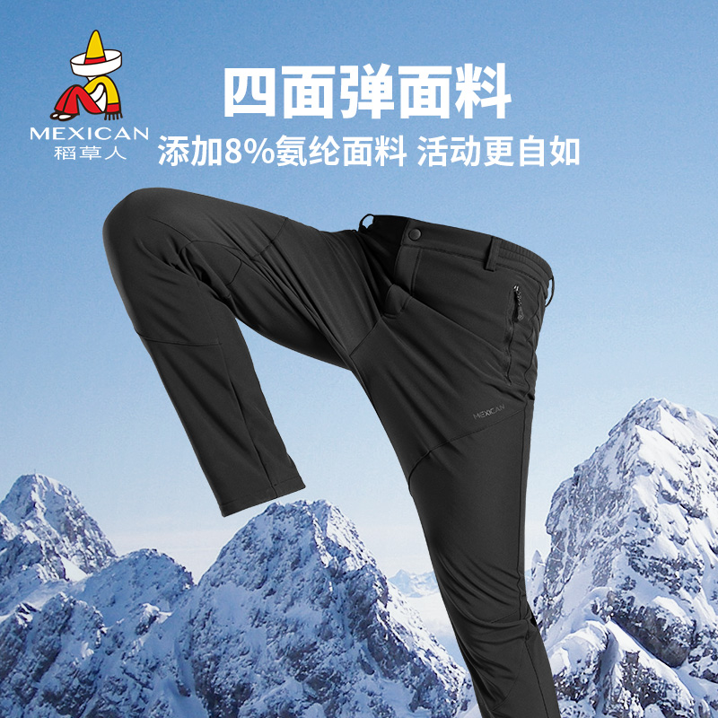 Scarecrow outdoor autumn and winter soft shell stormtrooper pants for men and women waterproof and windproof elastic fleece plus velvet thickened hiking pants