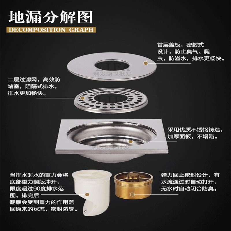 10cm stainless steel seal anti-overflow water washing machine special anti-odor floor drain thickened copper floor drain core three-way dual-use