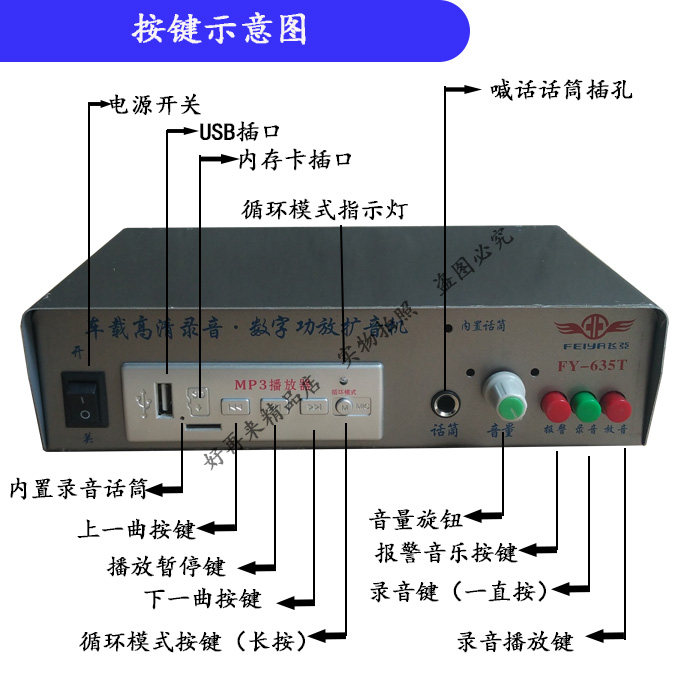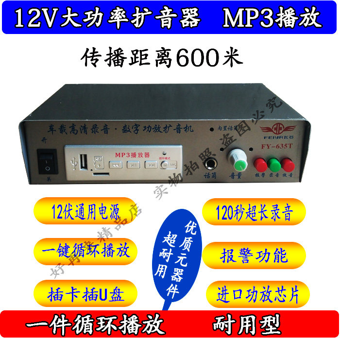 12V car loudspeaker Outdoor advertising recording publicity high-pitched aluminum horn Plug-in card plug-in U disk selling megaphone
