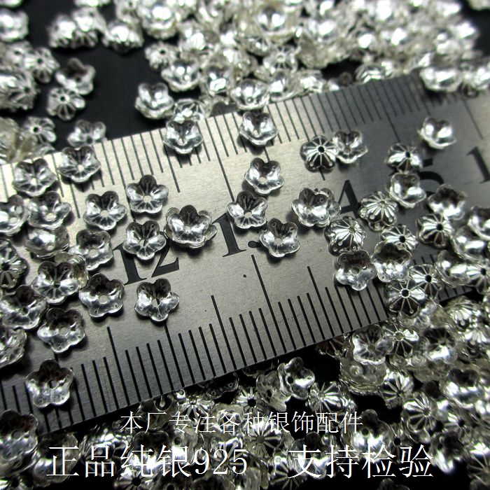 Crystal DIY925 pure silver vegetarian silver hollowed-out flowers 4mm flower hat semi-finished products made of pendant ear pendant ornament accessories