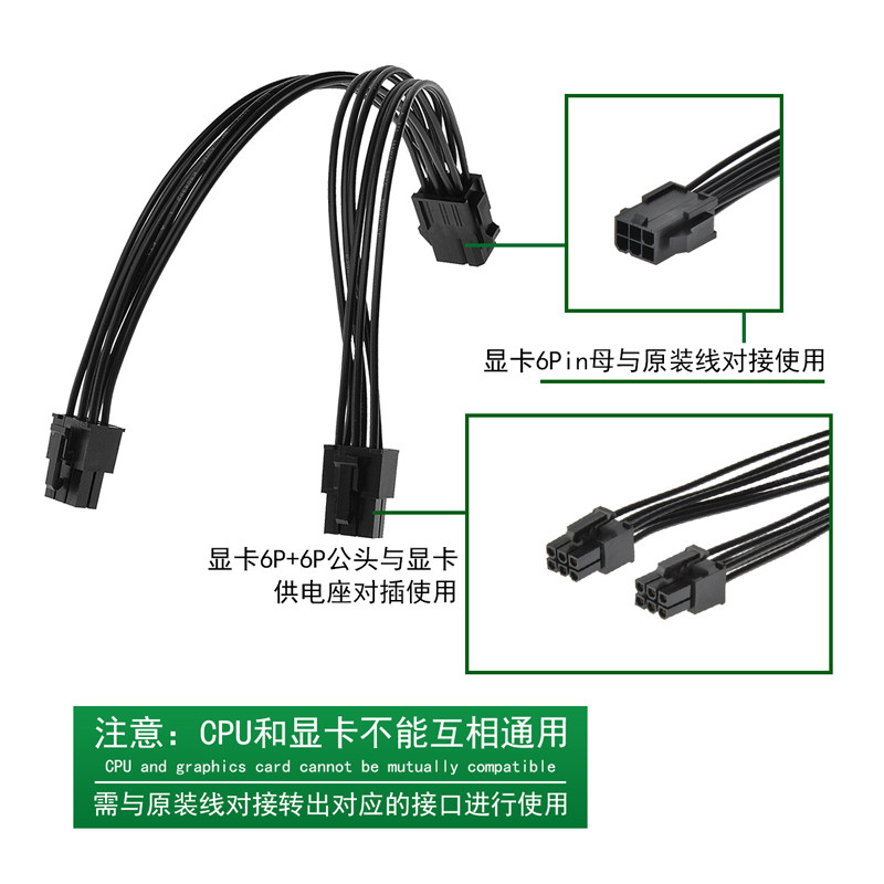 Computer graphics card 6p to 6p 6P graphics card power supply cable 6-pin graphics card one minute two adapter cable 6pin to dual 6pin
