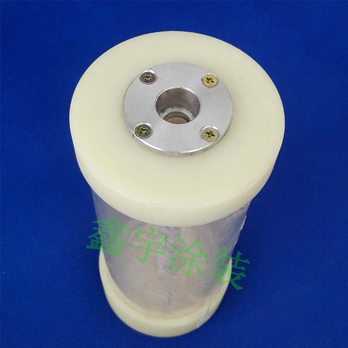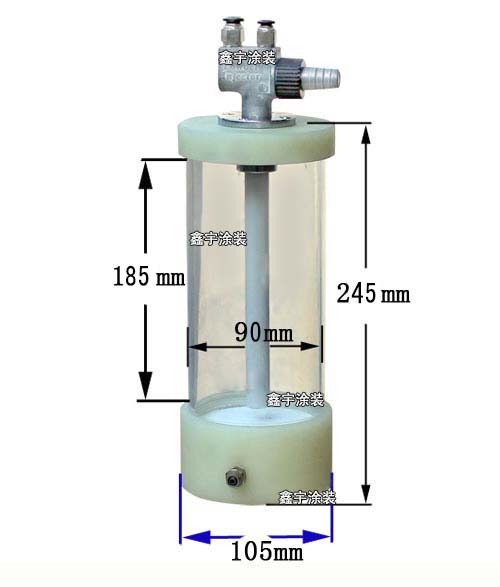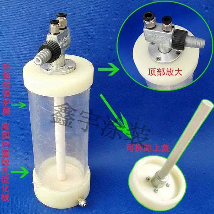 Experimental glass small powder cup fluidization cup for powder keg with fluidization plate and powder pump to give powder tube windpipe