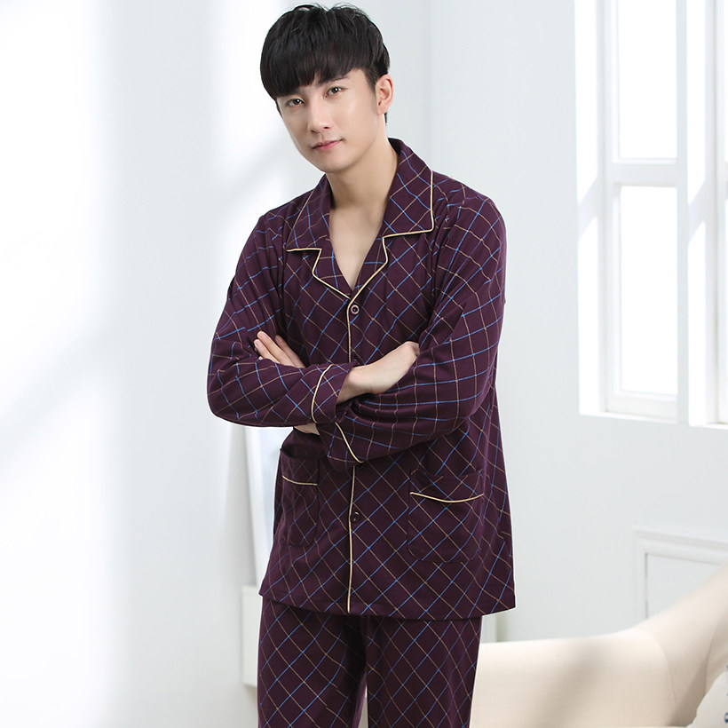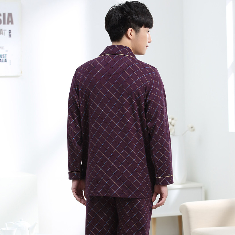 Men's pajamas spring and autumn cotton long-sleeved home clothes large size new middle-aged dad cotton plaid winter suit