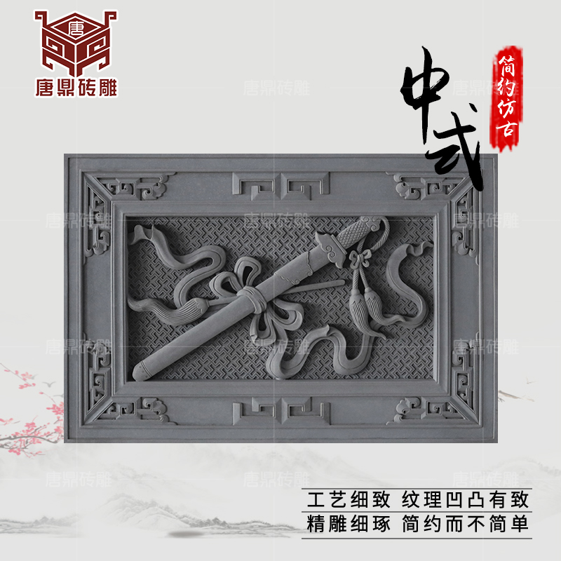 Antique brick Carved Wall Wall Chinese Background Wall Green Brick Decoration Cultural Wall Dark Octafairy 90 * 60cm Emblem Courtyard