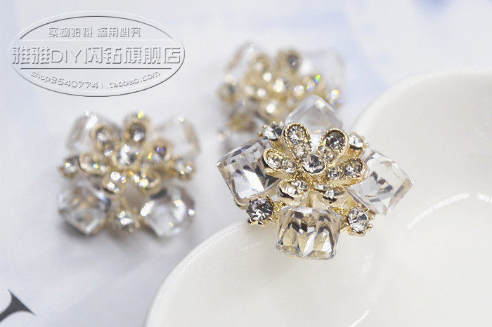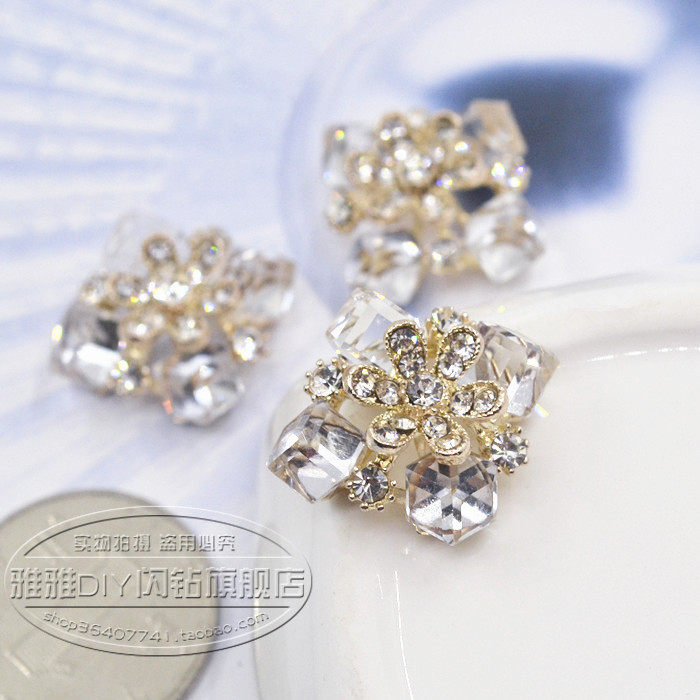 Square Crystal Retro-Inlaid Drilling Hair Accessories Diy Alloy Accessories Shoes Wrap Bag floral disc drill button handmade headwear material