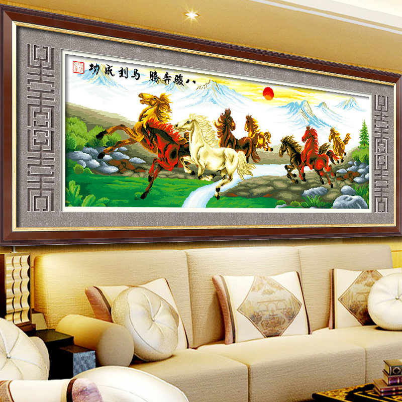 Cross embroidered 2022 new line embroidered eight-horse chart living room bedroom office with large eight horse horses to successful embroidery