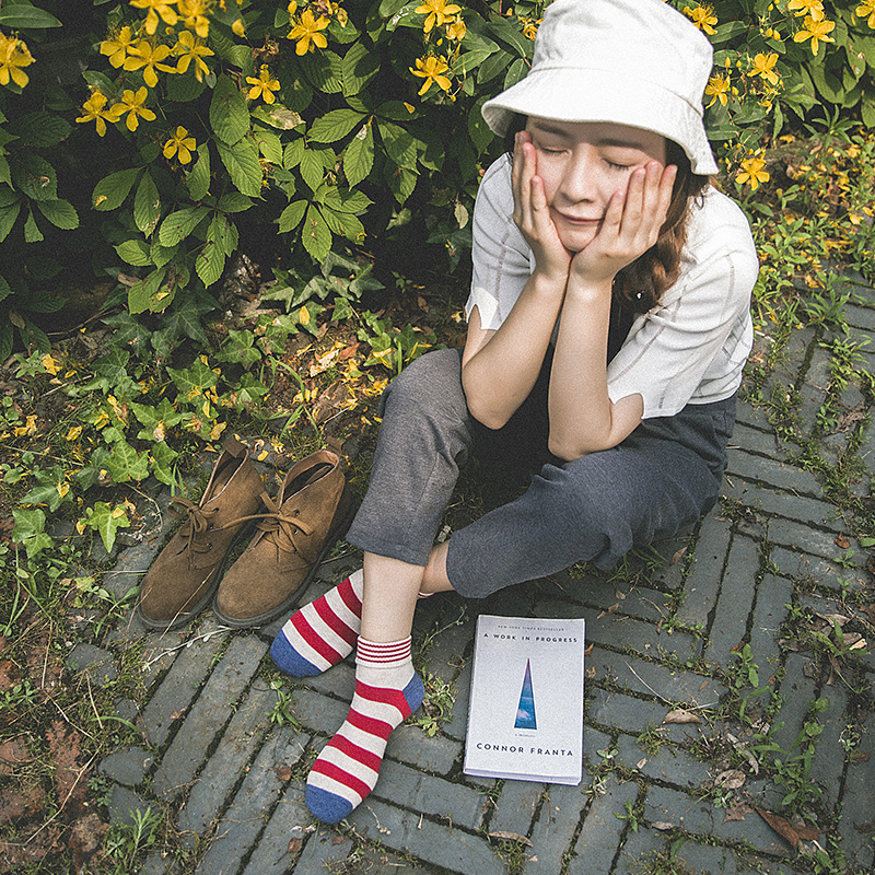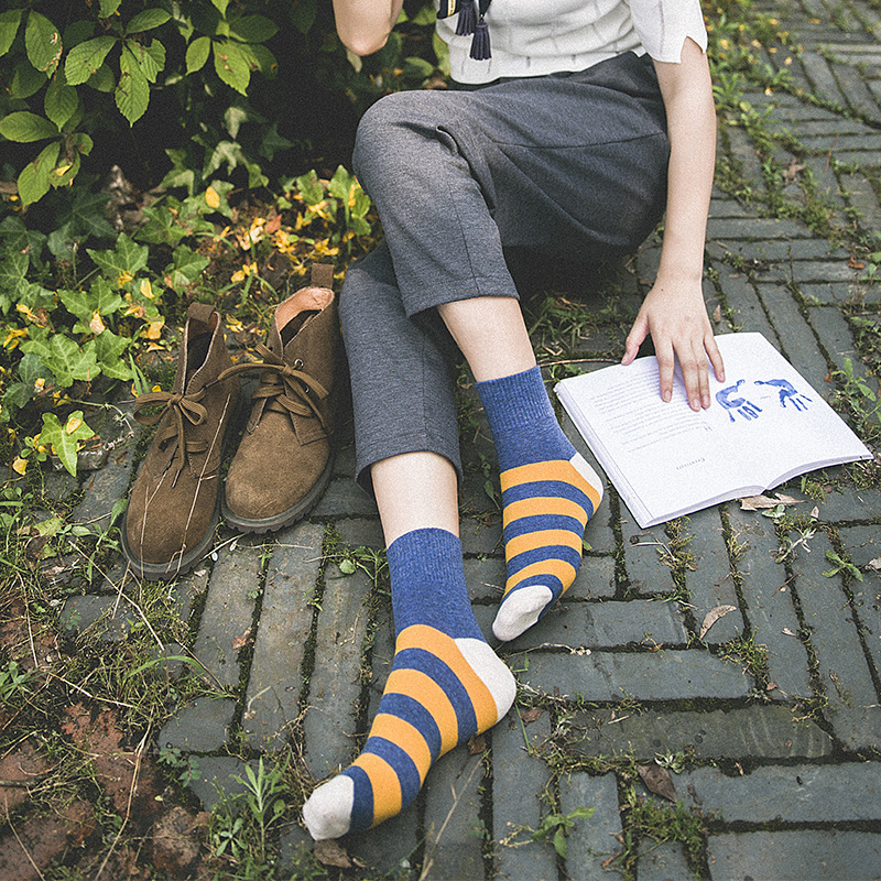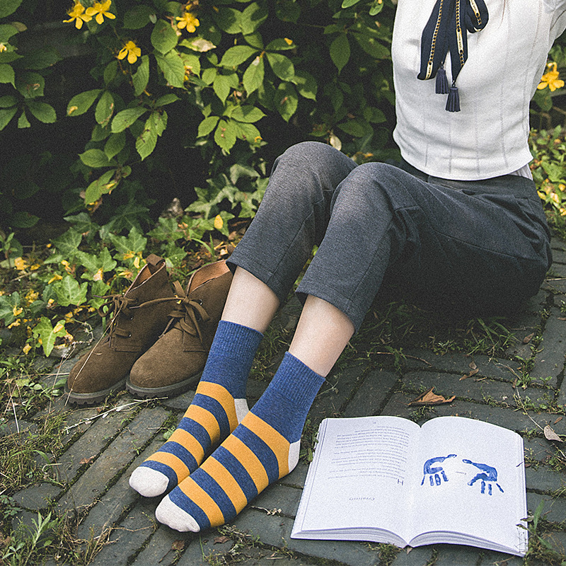 New spring, autumn and winter women's mid-tube socks cotton striped curling student basic pantyhose Korean Japanese socks