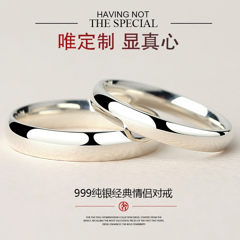 999 sterling silver couple ring female male fashion personality ins tide tail ring simple index finger ring ck small plain ring ring