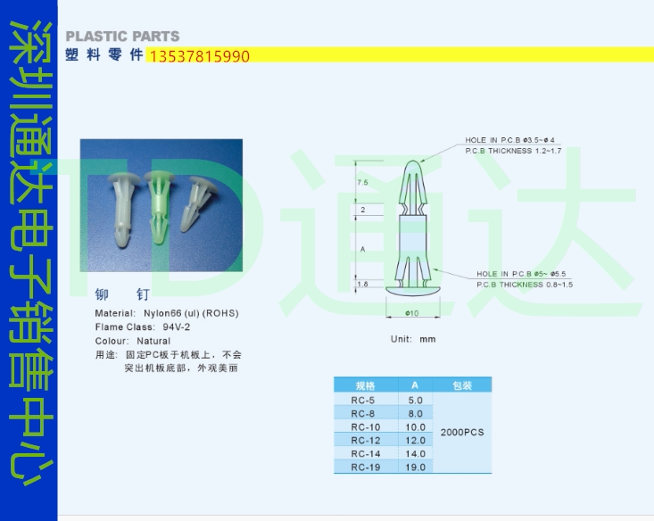 National nylon rivet RC isolation column PCB plate partition column series 2000 plastic rivet isolation column