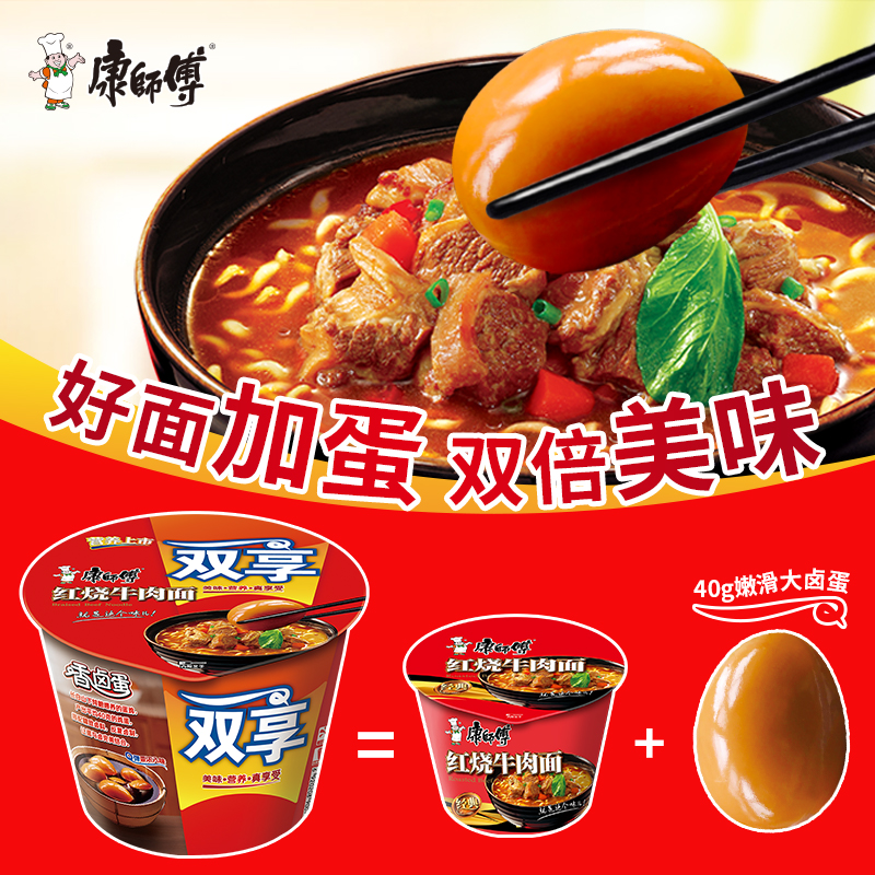 Master Kong instant noodles Instant noodles 12 barrels full box double enjoy braised eggs big food barrels Spicy braised beef noodles instant food