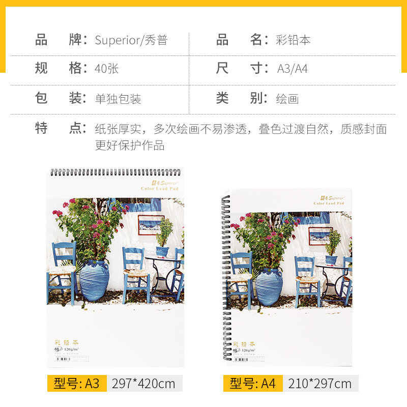 Xiupu A3 color pencil book 40 pages copy special painting water-soluble student beginner art oily coloring book