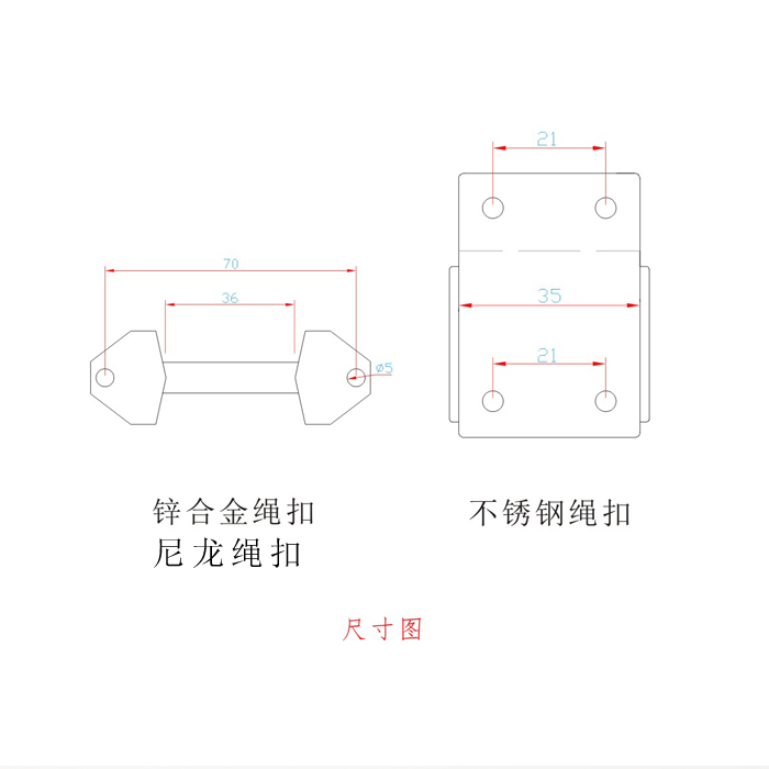 Nylon rope buckle (without rivets)Nylon rope buckle (with rivets)Stainless steel rope buckle (without rivets)Stainless steel rope buckle (with rivets)Zinc alloy rope buckle (without rivets)Zinc alloy rope buckle (with rivets
