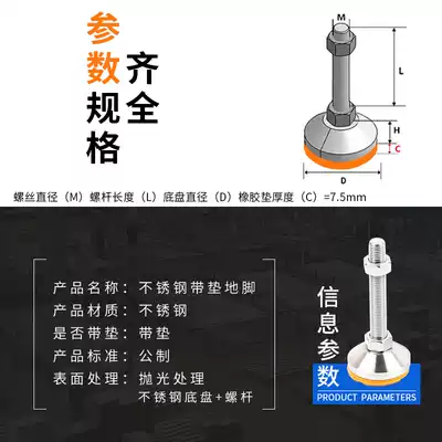 304 stainless steel heavy-duty adjusting foot TPU adjusting foot mechanical foot non-slip shock-absorbing foot Cup chassis 60