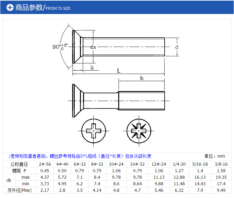 6#-32UNC 1 2 3 8 1 4 304 Stainless Steel American Machine Screws Inch Cross Countersunk Head Machine Screws